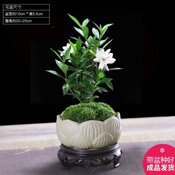 【13.9元 幼薇 小叶栀子花+莲花盆+圆形底盘 带盆栽好