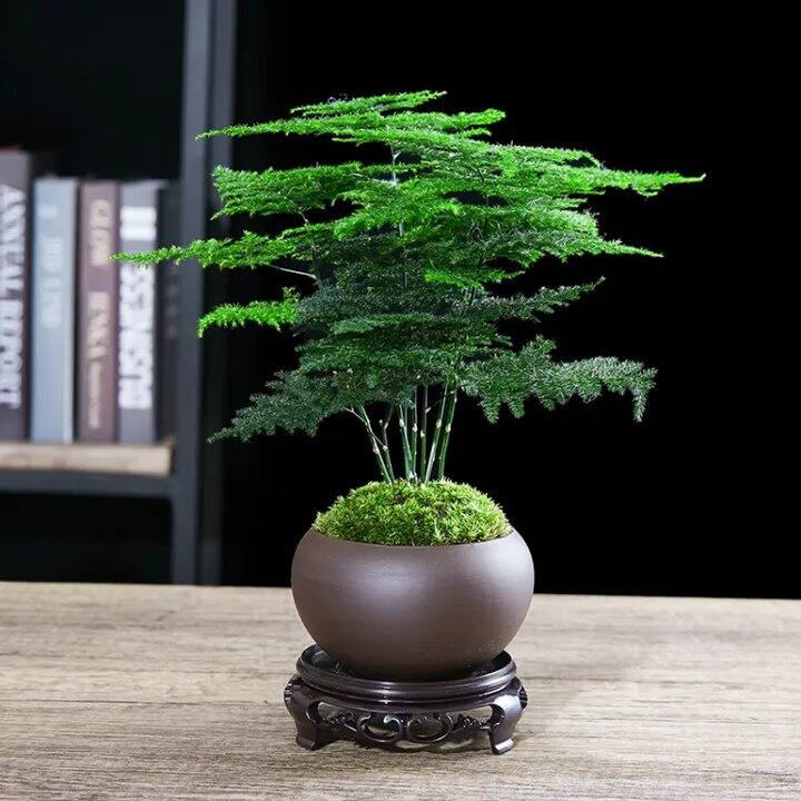 【14.9元 幼薇 文竹+紫砂圆盆+圆形底盘 带盆栽好