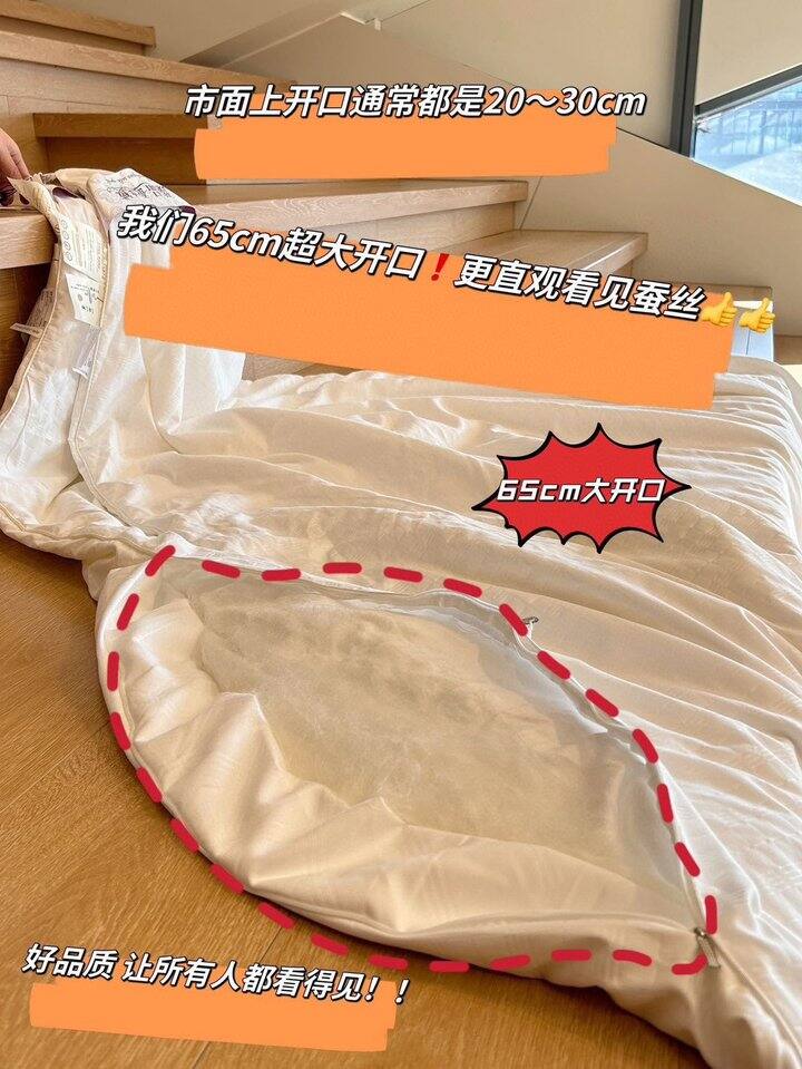 有质检认证,蚕丝被透气又保暖,吸湿排汗,天然调温,高档的床品。注意:蚕丝被本来就不厚哈,主打轻盈保暖;