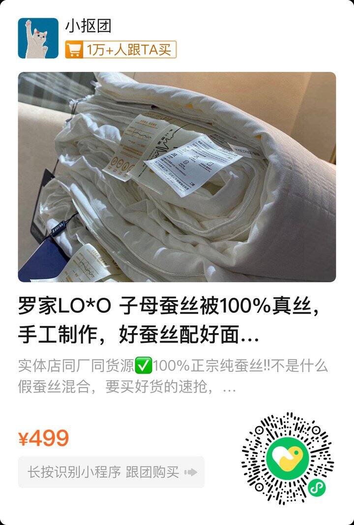 罗莱的子母蚕丝被,100%桑蚕丝,子被+母被,两床💰499。子母扣扣起来,叠在一起用就是冬被;
