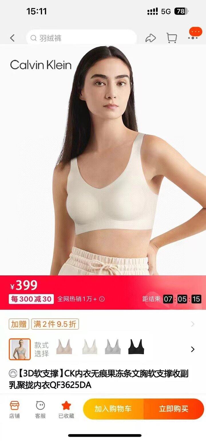 Ubras无钢圈一体杯文胸、CK软支撑无痕文胸&中高强度的运动内衣 细节图