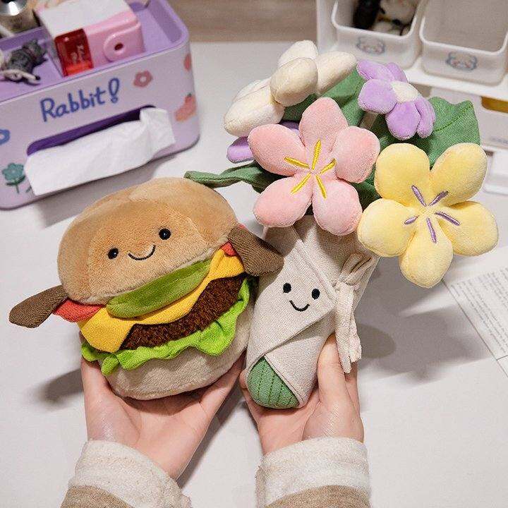 jc创意趣味花束手捧花玩偶汉堡毛绒玩具安抚公仔儿童女生生日礼物