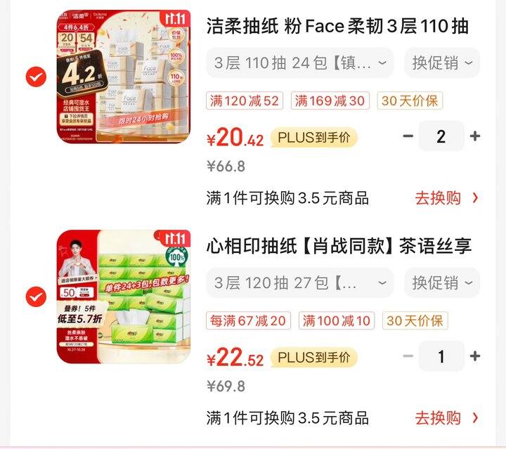 加购1件心相印茶语3层120抽27包:https://u.jd.com/K1u8ItT