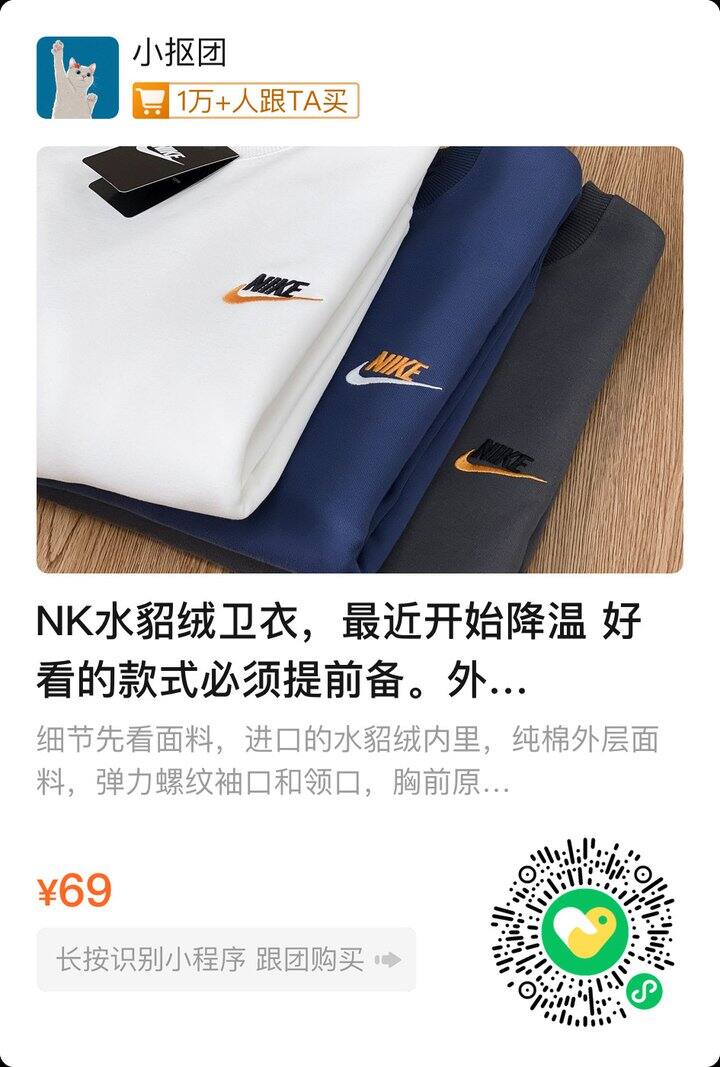 斐乐+安德玛,NK,都是青岛货属于做货了,但是质量很好。外层华棉+内里水貂绒。这个绒不容易掉毛,比较细腻。 一个套头圆领一个连帽款~适合降温单穿或者穿着羽绒服里面。
