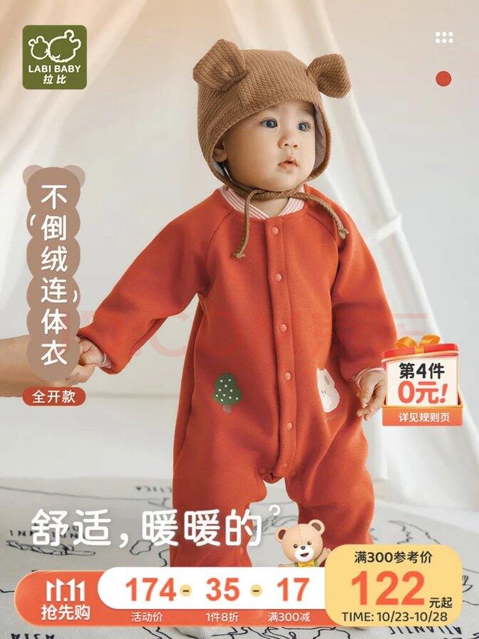 2、拉比不倒绒连体衣这件颜色也挺可爱的,无论是身子还是领子,手感都比另一件软,而且凑单下来比上一件还便宜几块钱,感觉比上一件更暖和,性价比更高一些。