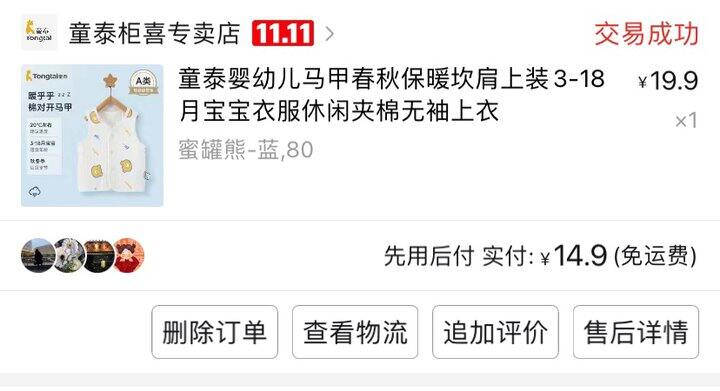 4、童泰小马甲质量还行,pdd发来有一点点污渍,给了点补贴,懒得换了。