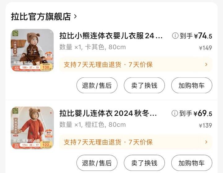 这件可爱的,料子算是比较好摸点卫衣料,跟纯棉连体衣比肯定是粗糙一些,但又比大人的毛圈卫衣料子好摸,犹豫蛮久还是留下了,算是我家娃性价比偏低的一件,主要是懒得换了。