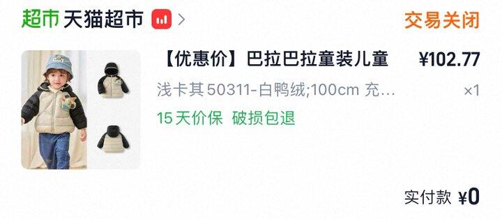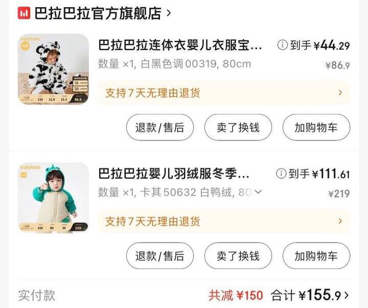 这件事我姐给买的,我准备留着给他过年穿了,衣服很可爱,巴拉巴拉款式质量真的挺不错。