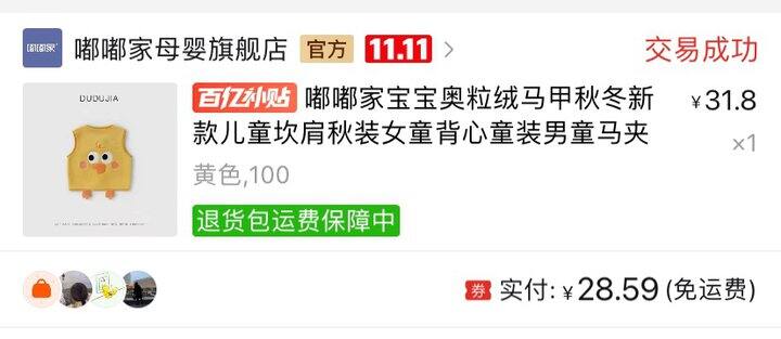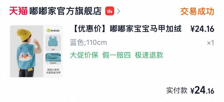 3、嘟嘟家马甲这件比去年买的黄色小鸭子款要厚,挺好的