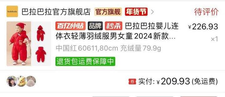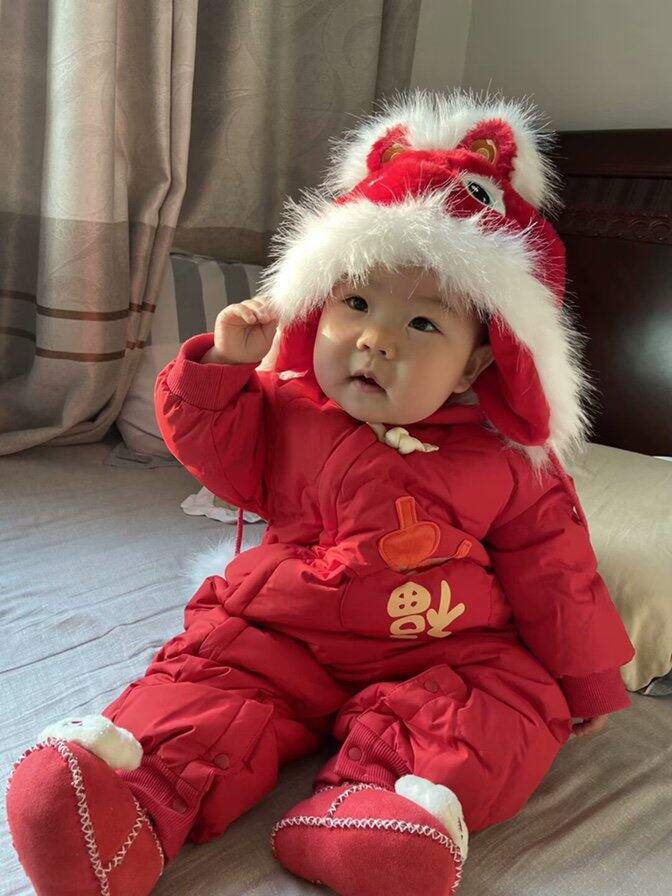 3、迷你巴拉 拉绒连体衣这个是龙年非遗联名,准备给娃过年穿里面,挺喜庆的,内里的绒比我之前想的要软,价格也很合适,之前担心绒粗怕要退货,摸了下感觉还行就留下来了。