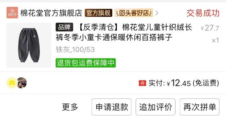 2、嘟嘟家、棉花堂家4条裤子以下四条裤子是从薄到厚排列,质量都很好,相当对得起价格。