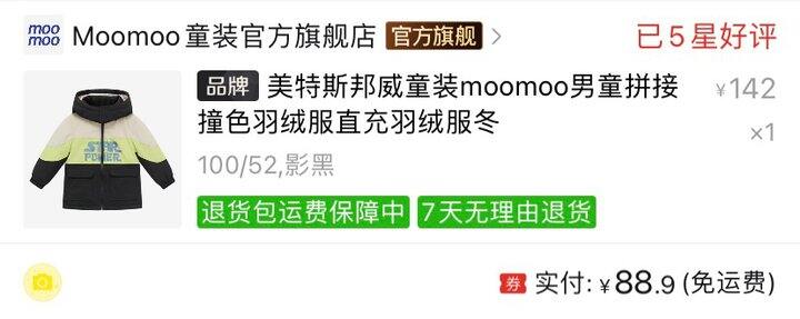 3、moomoo羽绒外套绒子含量一般,胜在性价比高,很细节的一点是衣服内侧有姓名贴