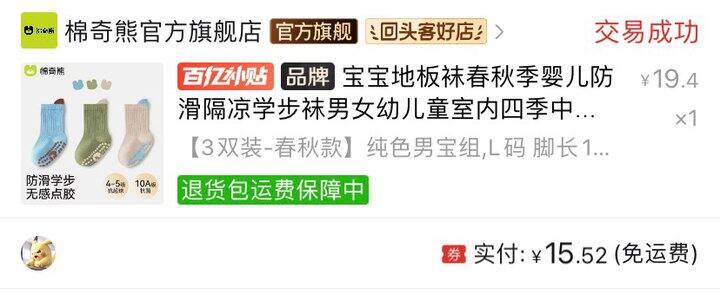 9、棉奇熊宝宝棉袜厚度有的,有防滑设计,秋天孩子不爱穿鞋在地板走的时候买的,跟运动蜂套组一起撑起了孩子秋冬袜子的天