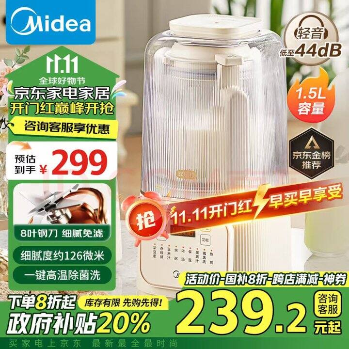 美的1.5升安睡低音降噪破壁机 MJ-PB4G3-555