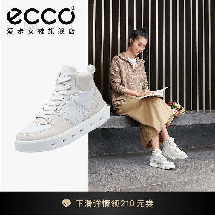 ECCO爱步女鞋休闲鞋 百搭厚底板鞋真皮小白鞋高帮鞋 街头209723