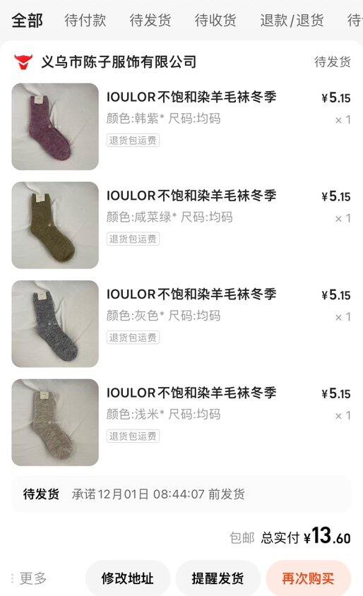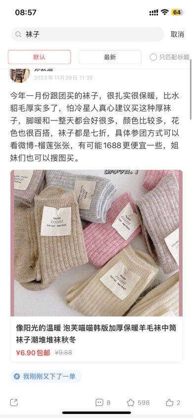 去年淘宝买了这家袜子,很喜欢,厚实且漂亮,正好看到xhs博主分享了同品牌类似款,满4双满足混批,新人包邮减一元,到手20元左右。