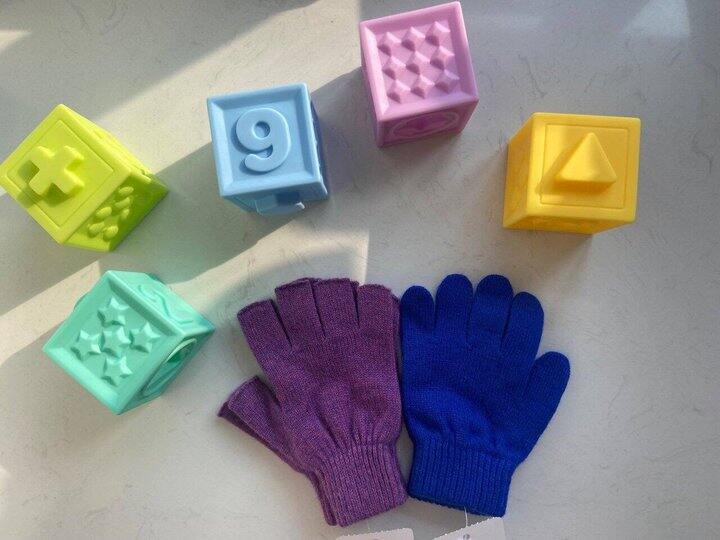 店主给寄过来4双样品,2双露指、2双全指,各种尺码各一双。我自己偏好柔和色调,本来看店主拍的颜色感觉太亮了,怕不好看,到手之后反而觉得亮色挺好看的,童年就是要五颜六色呀~
