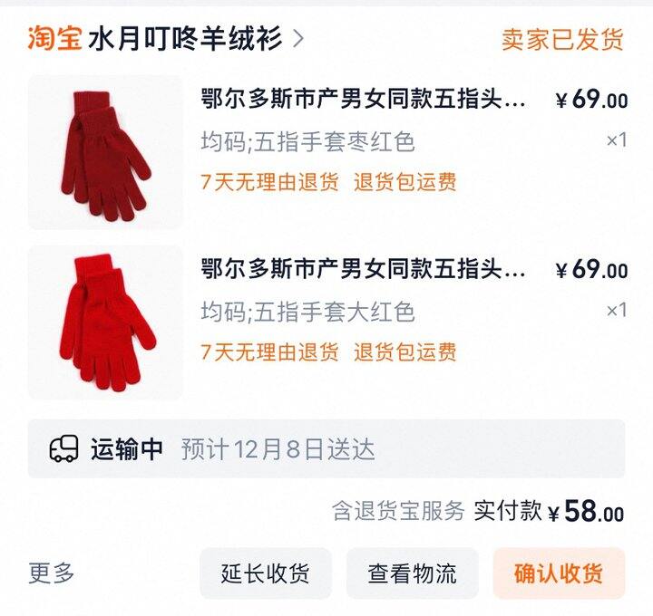 讲真,我一开始心里是打鼓的,我去年买了两双羊毛手套,二三十一双,质量不错,但羊毛含量真不算多。老板这个19一双包邮,还是100%纯羊绒…虽然是儿童手套用料少一些,虽然是路口老双皇冠店了,但总怕有点啥…你们应该懂我这种心理吧,懂吧?懂吧?[胖鹿捂脸]