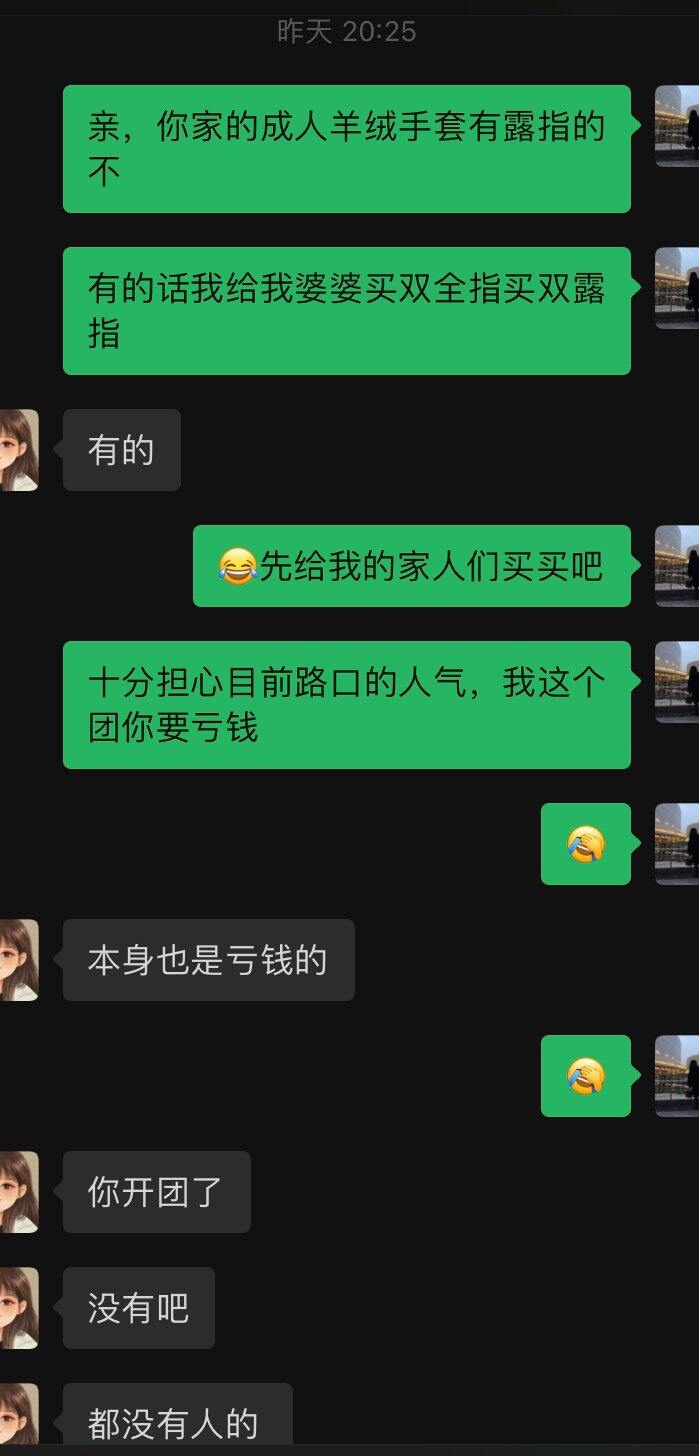 事情的起因是路口羊绒老店 @水月叮咚羊绒衫 的老板私信我这个平时把路口当朋友圈发的小透明,问有没有合作意向,她手里积压了一批儿童羊绒手套,准备亏本出清。