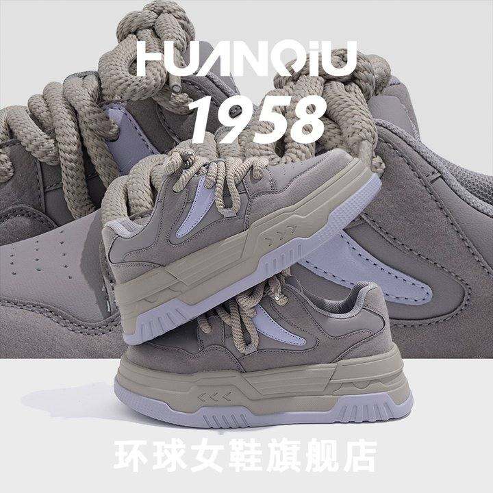 环球芋泥紫板鞋女2024秋冬新款百搭厚底女鞋小众设计感面包运动鞋