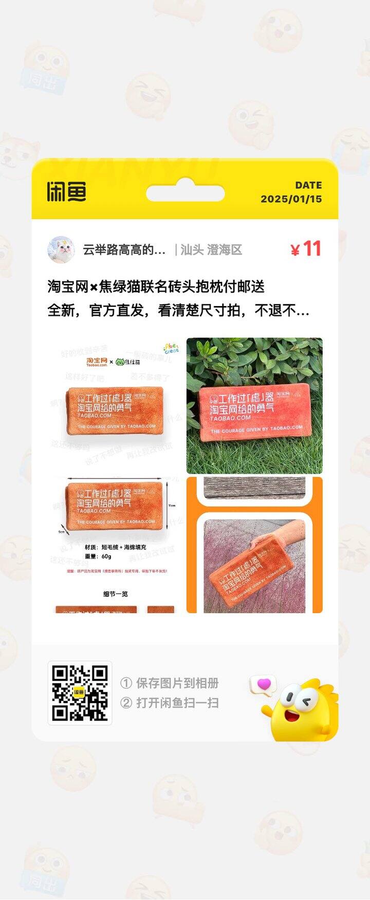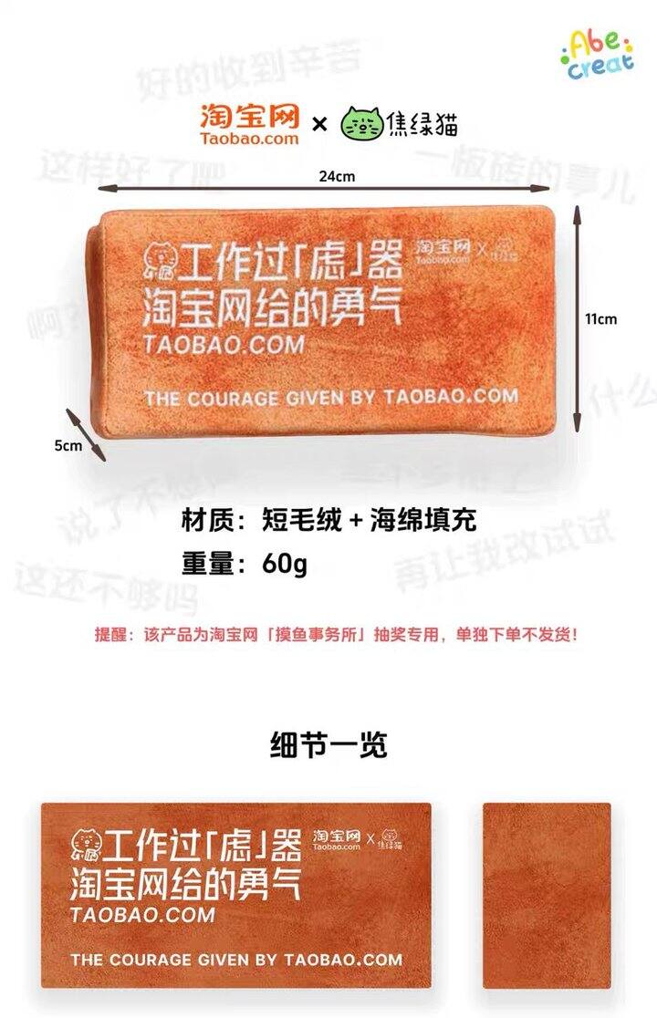 淘宝网×焦绿猫联名砖头抱枕付邮送