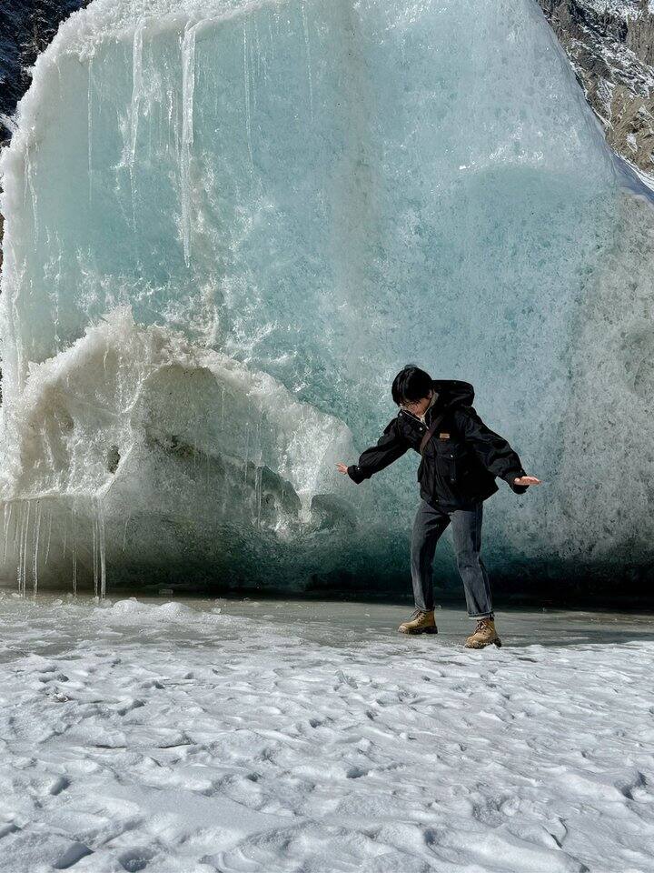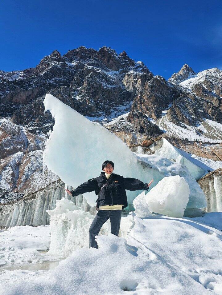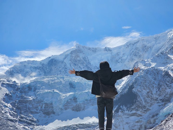 千年冰川,迷人的蓝绿色,然后偶尔轰隆隆从底下传来的冰裂声,以及远方雪崩的白雾,冰川脚下,人愈发渺小,只剩下对大自然的感叹和敬畏!