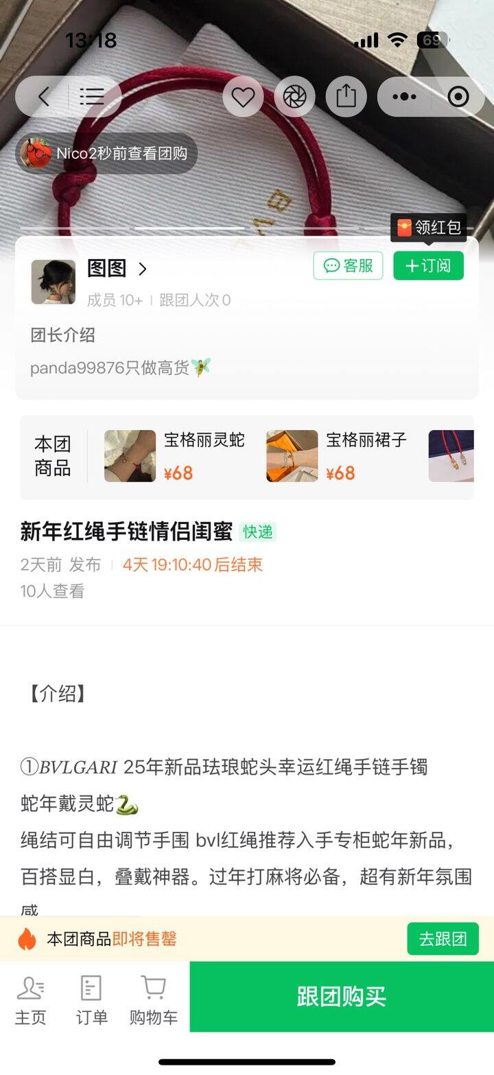 那些巨贵的红绳她全都68!我激情下单两根!小姐姐人巨好,让我分开下单可以领两次红包,她真的,我哭死!