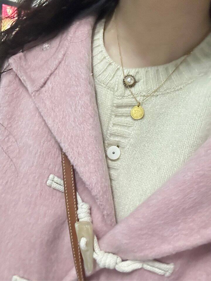 一手买的粉色澳毛牛角扣