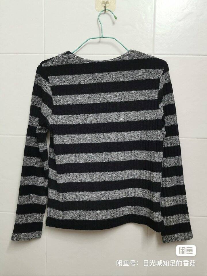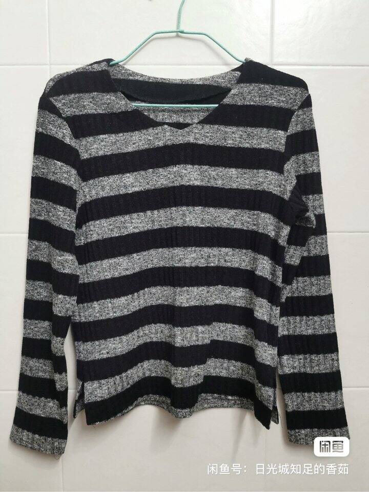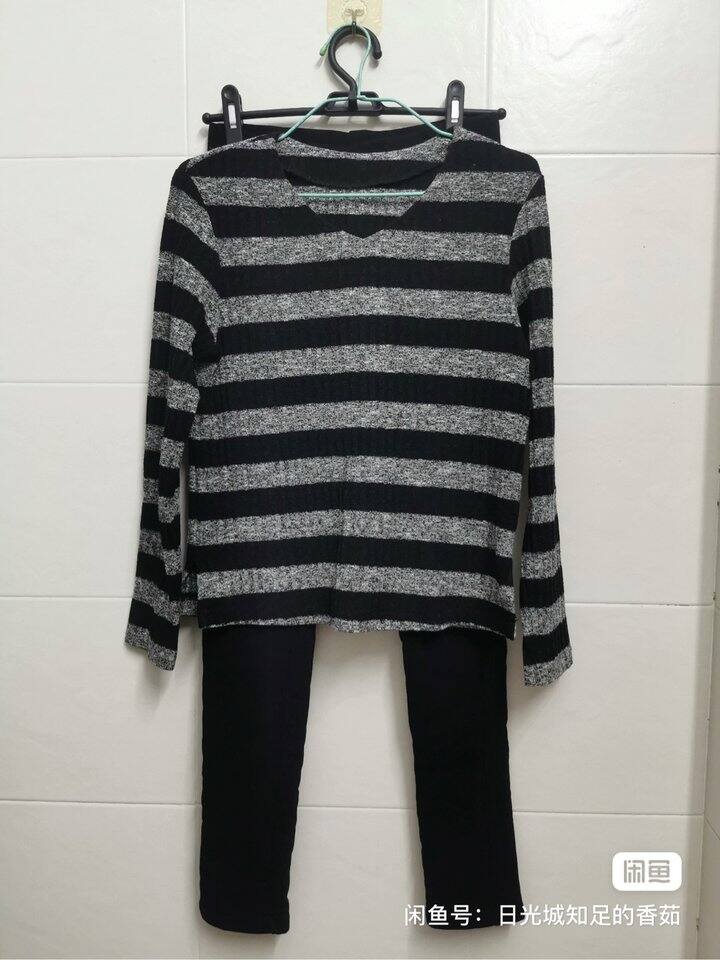 黑灰条纹针织衫上衣+婴儿绒铅笔裤加绒小脚裤付邮送