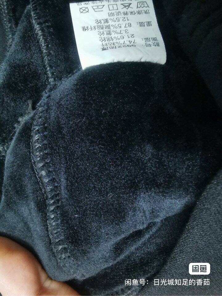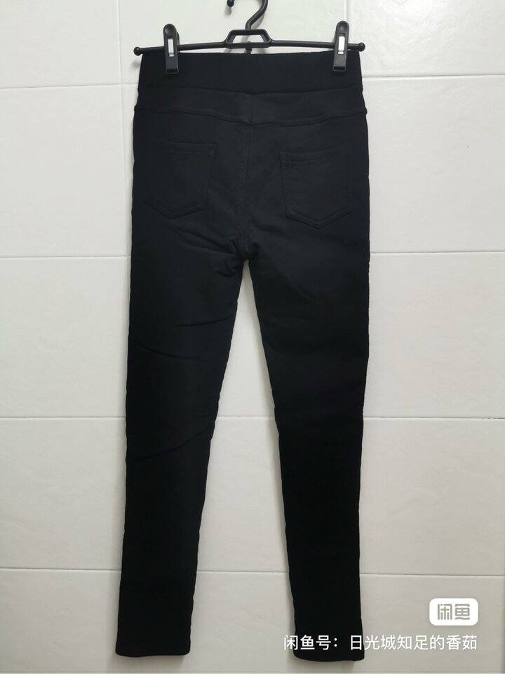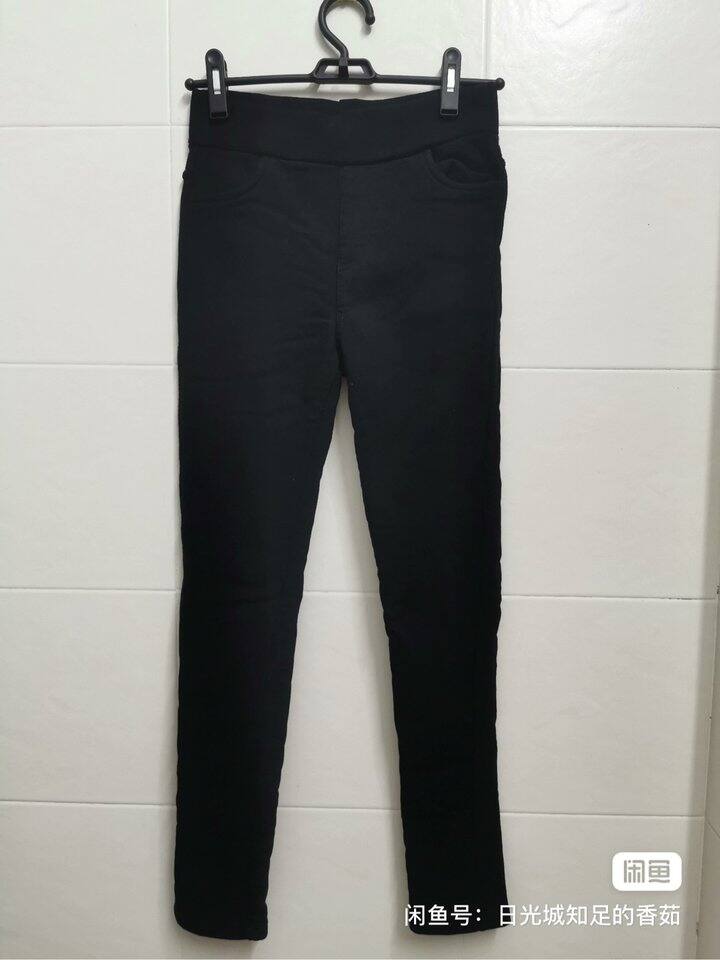 黑色裤子穿过一次,还很新。内里加绒儿绒,腰围62-68,裤长86