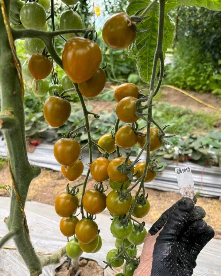 唐珀琥小番茄是近年走红的高端口感型小番茄品种,凭借独特的焦糖琥珀色外观和脆甜爆汁的风味成为市场热门~