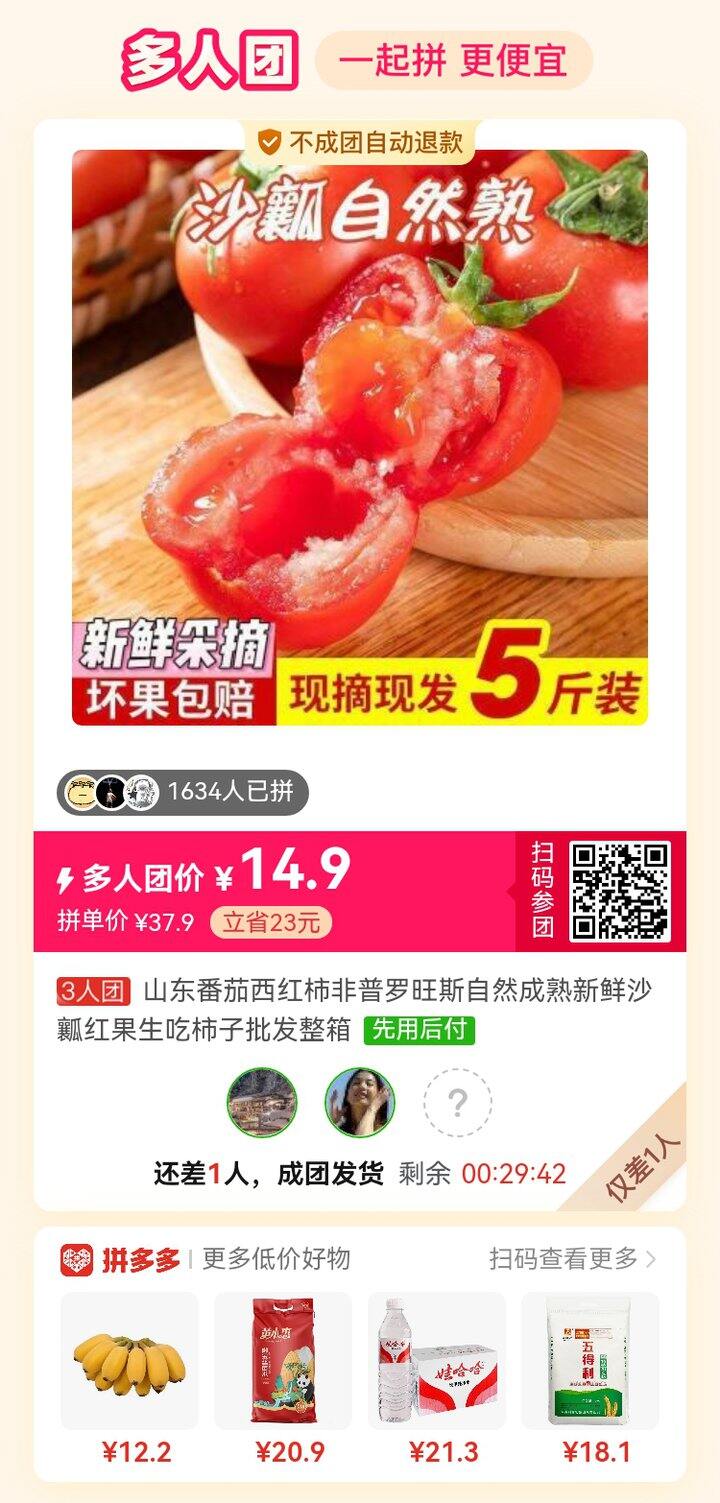 求拼团 差一人的小台芒和番茄