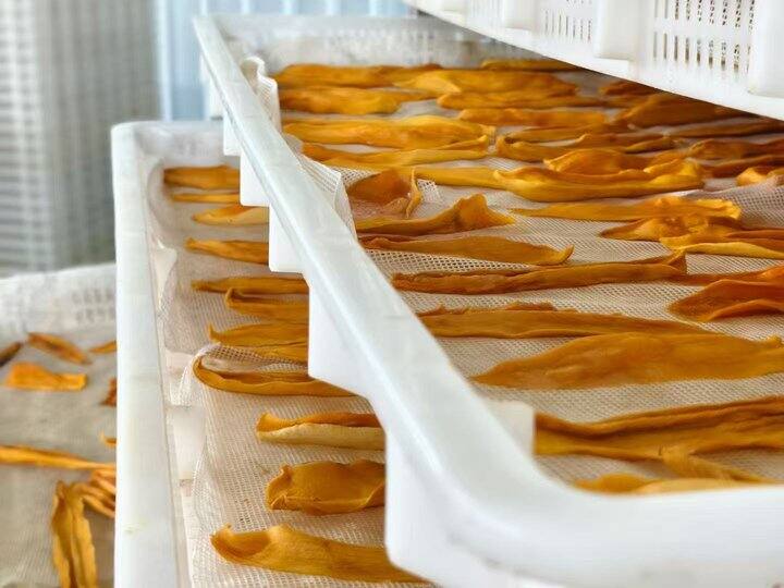 无添加的芒果干不像传统在超市买到的那种芒果干一层糖霜,各种添加剂和香精,虽然看起来很诱人但却是工业化之下的产物我们只要芒果的原果烤制,一点糖都不添加每一颗芒果都是人工精挑细选之后,然后在去削皮,去核,切条,摆摊,烘烤,一点点精细化操作~
