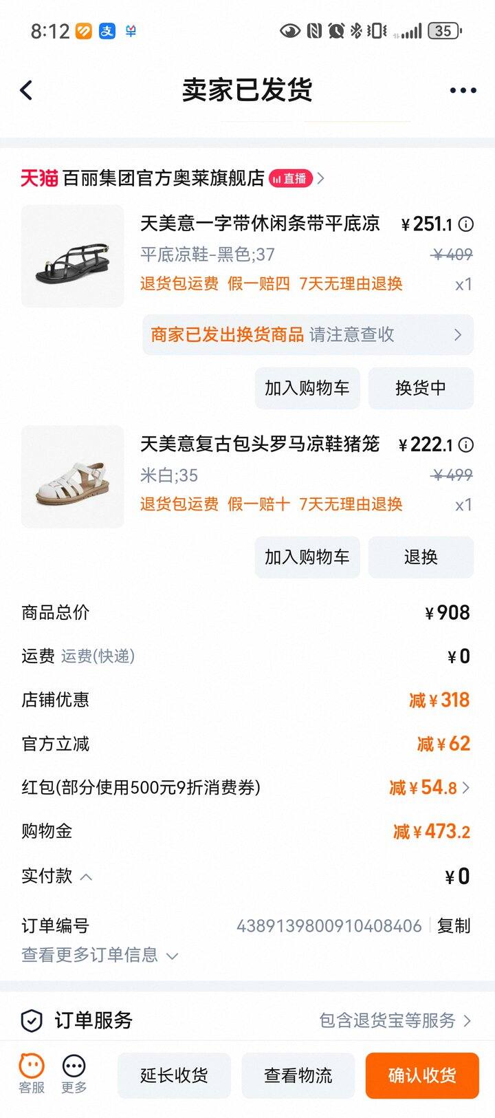 第二双0元,我脚太丑了,穿着不好看,只想留一双,换货的白色38码。