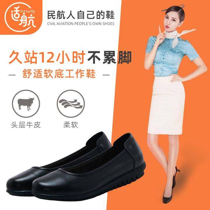 适航班工作鞋女黑色空姐鞋平底软工鞋空乘务鞋上班不累脚久站舒适