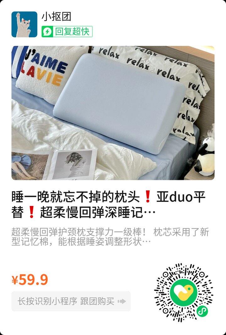 慢回弹记忆枕59.9,这个好舒服,连我家那挑剔的家属都说好睡。深睡枕就选它。可以当亚朵的平替。面料也凉凉的,适合夏天