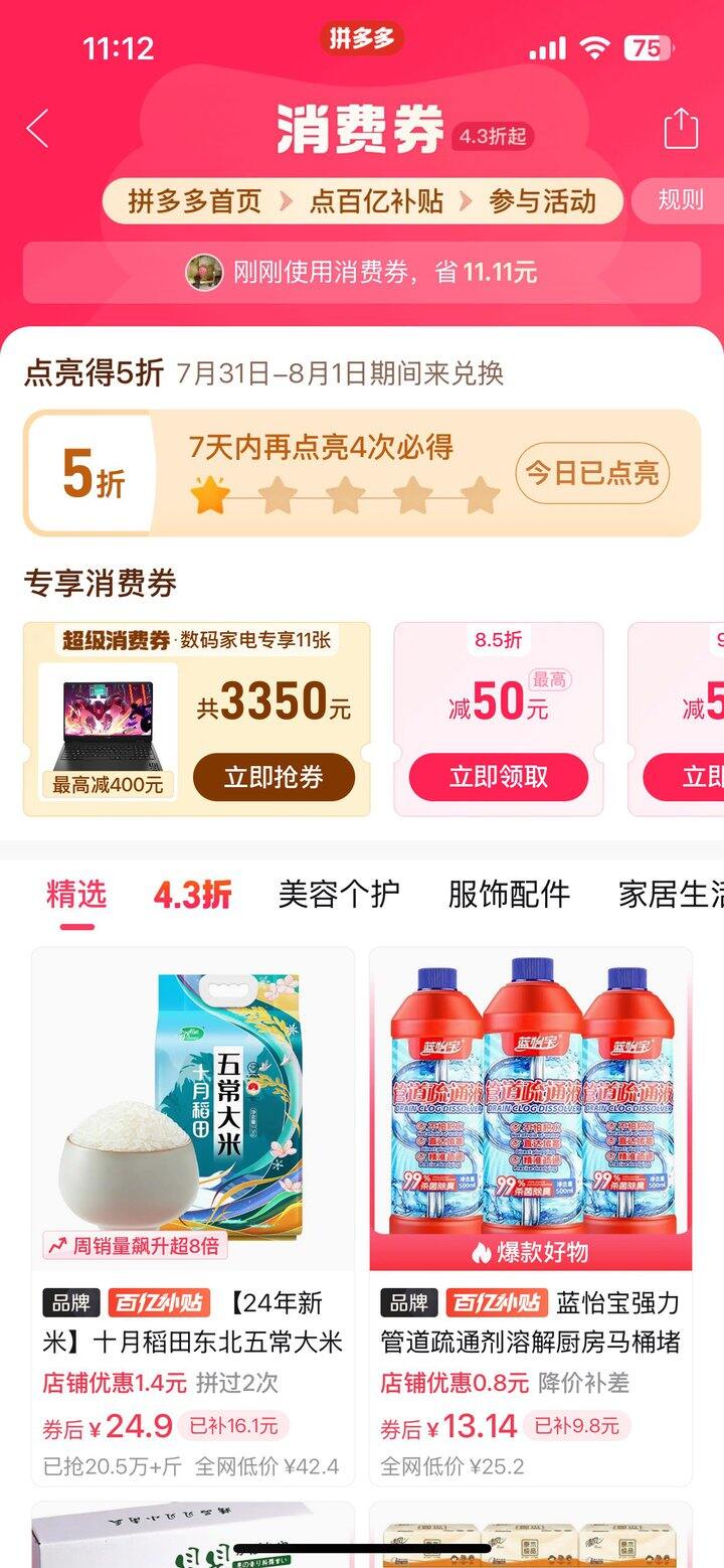 app首页-百亿补帖-消费卷- 点亮(可能限号显示)