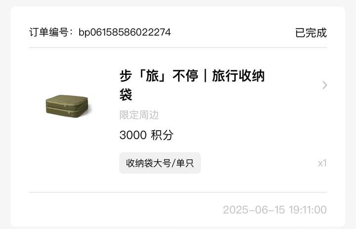 至本的空瓶双倍积分到了,兑换了这个收纳袋,质量很大,分两层的大号,空间很大,可以放很多衣物!