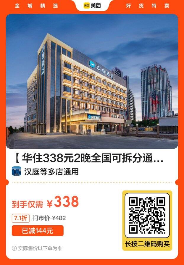🏨 【华住338元2晚全国可拆分通兑】星程、汉庭、你好等品牌适用http://dpurl.cn/6wc4RKBz