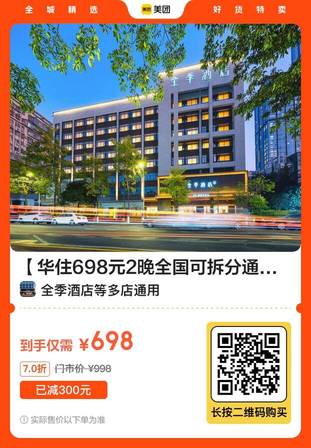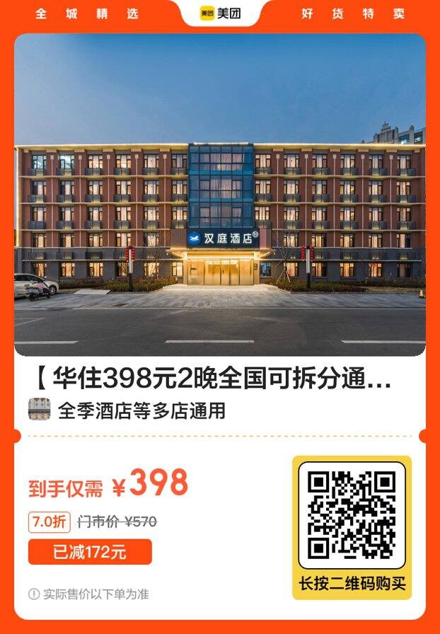 🏨 【华住398元2晚全国可拆分通兑】全季、星程、汉庭等品牌适用 http://dpurl.cn/IeSlCG4z