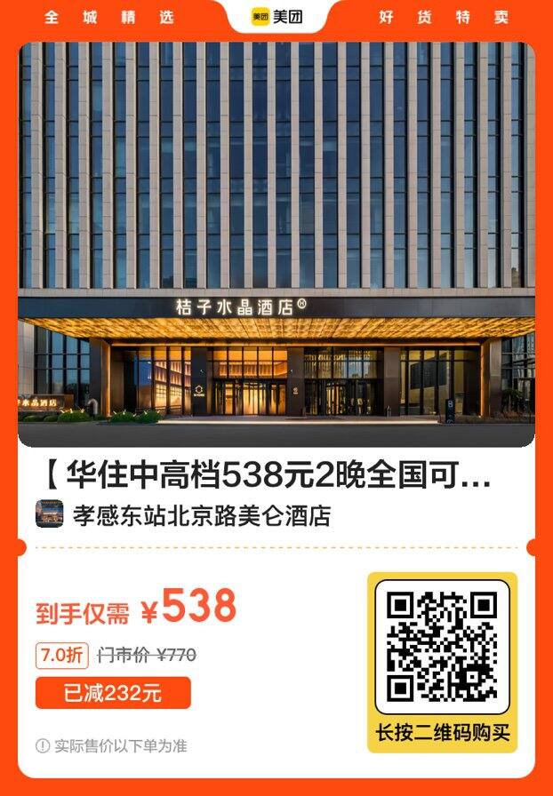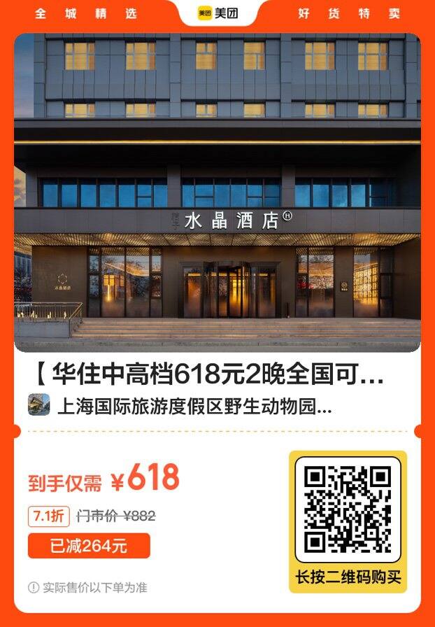 🏨 【华住中高档618元(券后568)2晚全国可拆分通兑】水晶、美居、美仑等品牌适用http://dpurl.cn/DVmLnntz