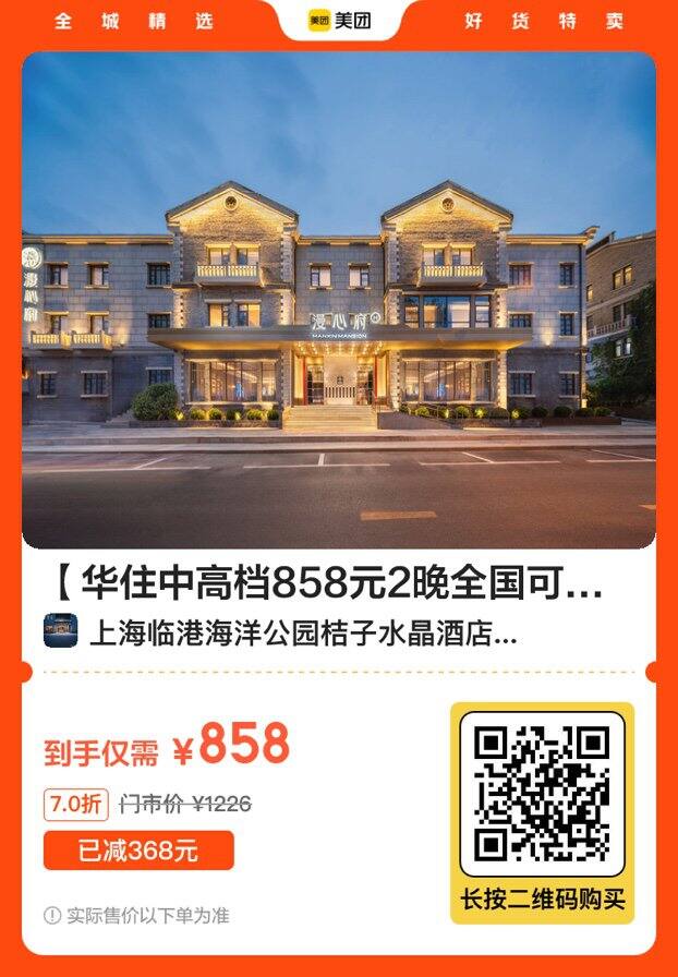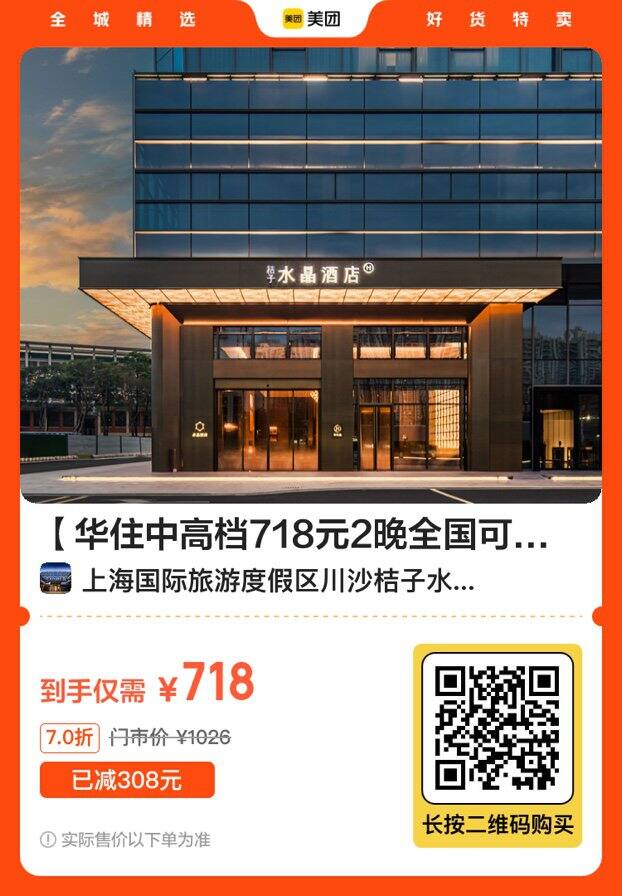 🏨 【华住中高档858元(券后808)2晚全国可拆分通兑】水晶、城际、漫心等品牌适用http://dpurl.cn/d0DgN7nz