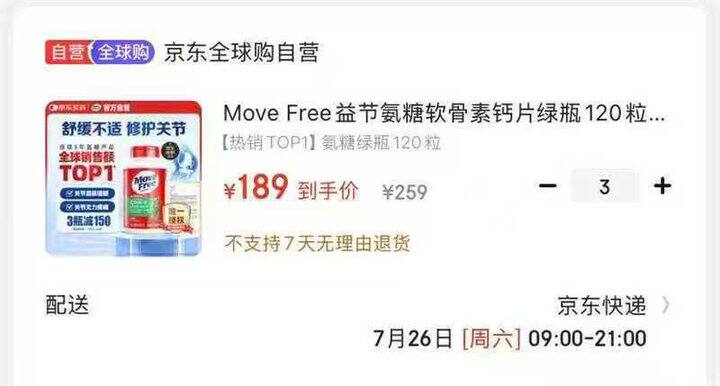 【自营】Move Free益节氨糖软骨素钙片绿瓶120粒