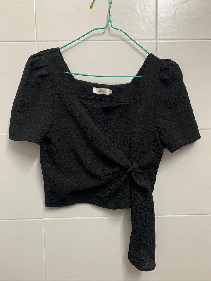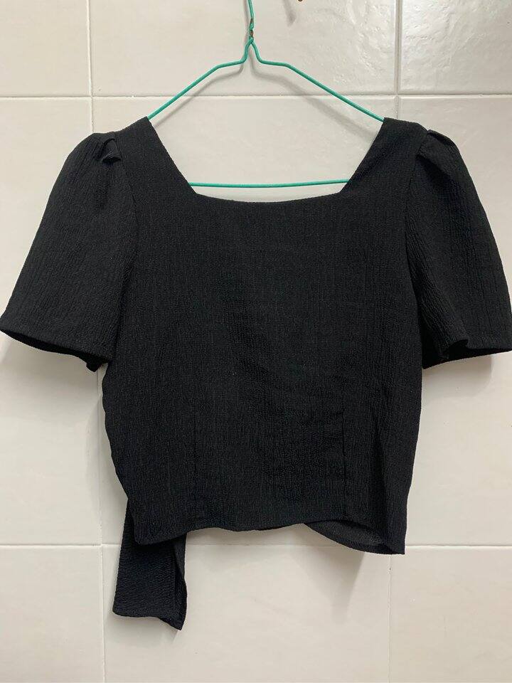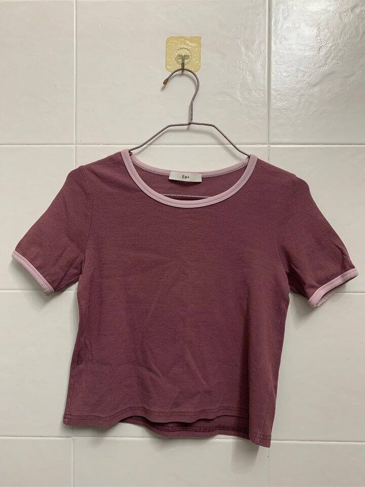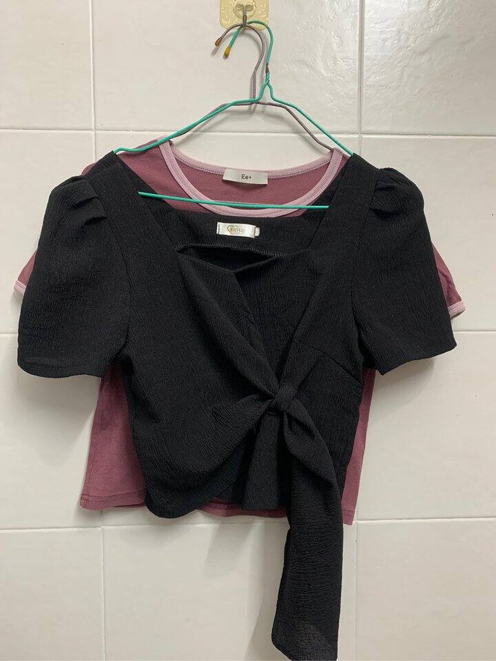 黑色方领短款系带T恤+粉紫色短袖T恤付邮送