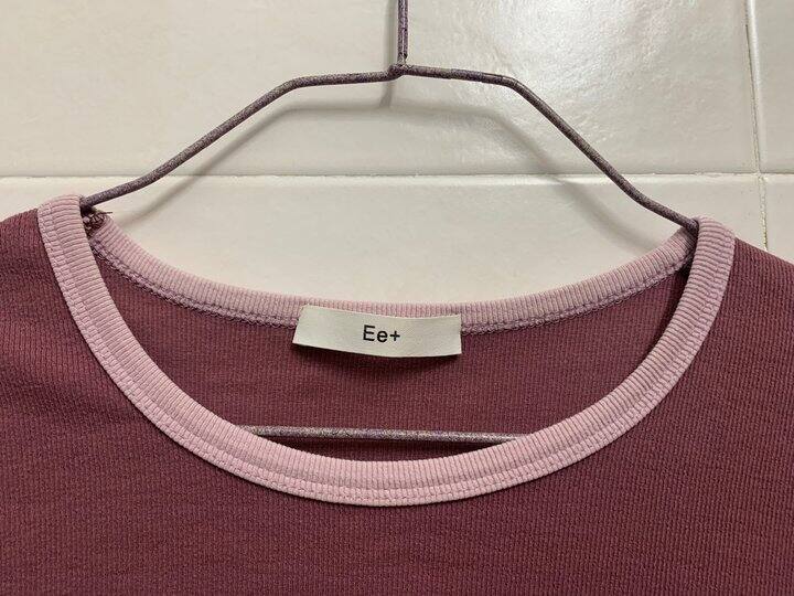黑色上衣穿过两次,粉紫色上衣全新,洗过未穿过,两件衣长都是44,短款,适合90斤以下的姐妹穿