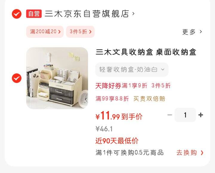 三木文具收纳盒 文具整理神器 轻奢白1只装