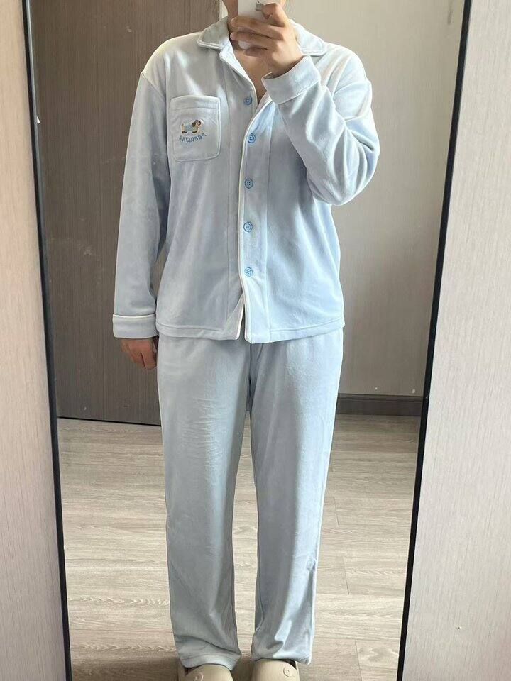 很喜欢这款暖暖绒睡衣。颜色选的蓝色,看起来奶呼呼的,很好看。材质厚实柔软,绒毛细腻,摸起来暖乎乎的,穿身上更舒服。做工精细,线头都处理得很好,开衫设计穿脱方便。抗静电,穿一整天都不黏毛,太实用了秋冬必备好物!