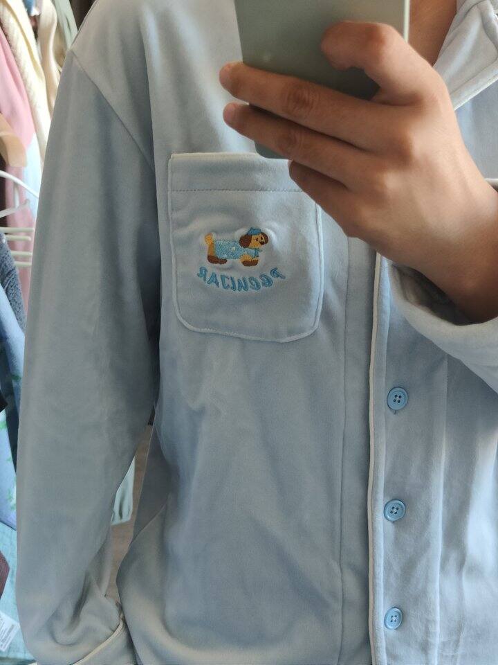 做工很好,没什么线头。很喜欢上衣口袋的卡通小狗,看起来很精致。