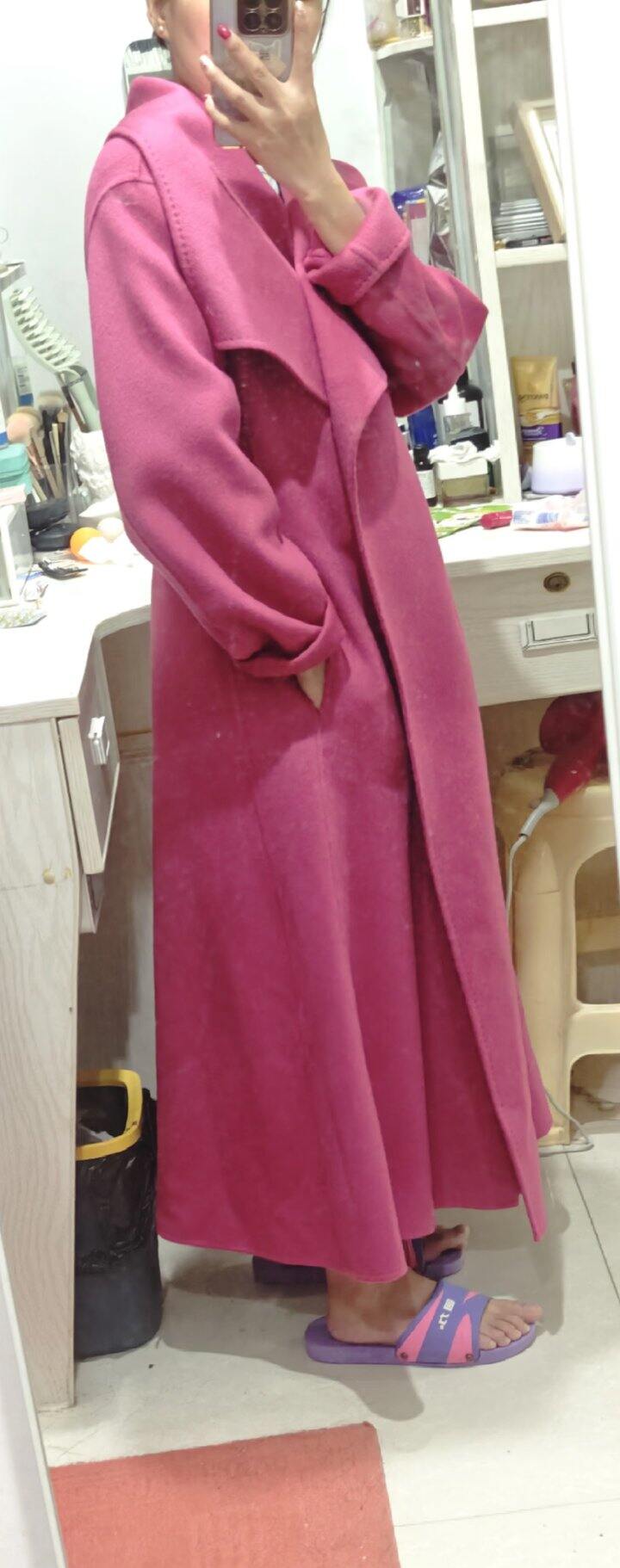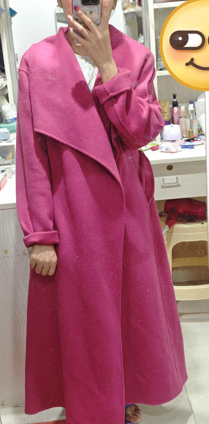 身高153cm,86斤,这件大衣长116㎝,还没有买过这种颜色的大衣,衣长我之前穿过110的,这么长的还没试过