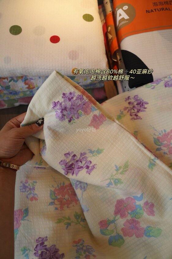 有氧泡泡棉 60%棉➕40%亚麻纱,越洗越柔软越舒服,被誉为会呼吸的面料!有氧泡泡棉由棉线和亚麻纱线制成,又轻又透气 摸起来手感软乎乎的。带有机理感,立体蓬松的感觉,随时感觉有氧气在泡泡机理上咕噜咕噜冒泡。